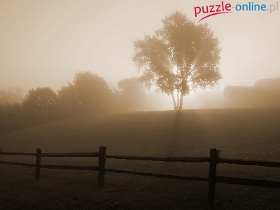 Ogrodzenie, Słońce, Mgła, Drzewo, Przebijające