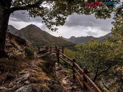 Puzzle Ogrodzenie, Drzewa, Wzgórza, Góry