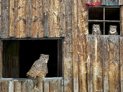 Puzzle Okna, Drewniany, Budynek, Sowy