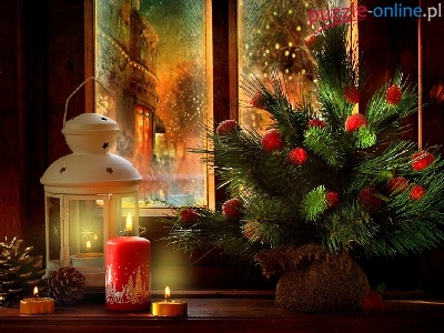 Puzzle Okno, Stroik, Świeca, Boże Narodzenie