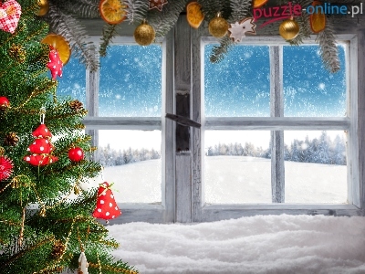 Okno, Dekoracja, Boże Narodzenie, Choinka, Zima
