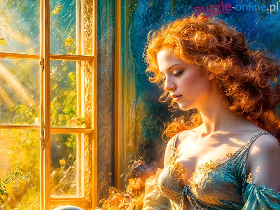 Ruda, Okno, Kobieta, Grafika, Słońce