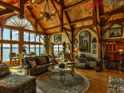 Puzzle Okno, Salon, Meble, Widok