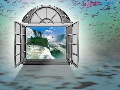 Puzzle Widok, Okno, Wodospad
