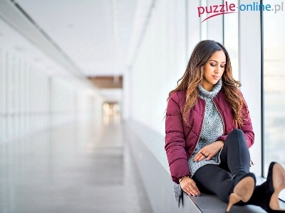 Puzzle Okno, Kobieta, Wnętrze, Parapet