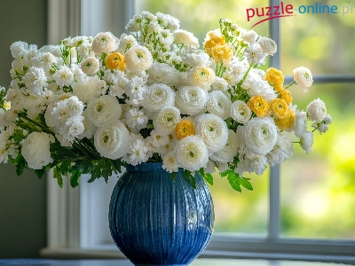 Bukiet, Jaskry, Żółte, Okno, Białe, Kwiaty, Wazon