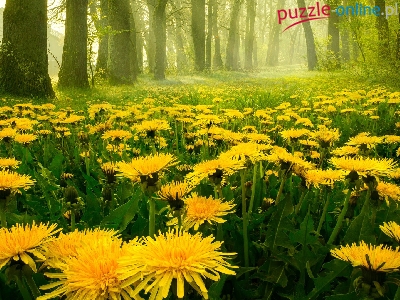Polana, Okolice Reghin, Mgła, Rumunia, Las, Mniszek pospolity