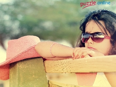 Puzzle Okulary, Brunetka, Kapelusz, Płot
