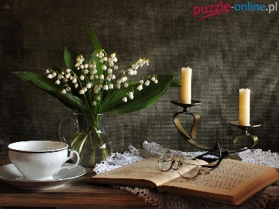 Puzzle Okulary, Konwalie, Książka, Świecznik