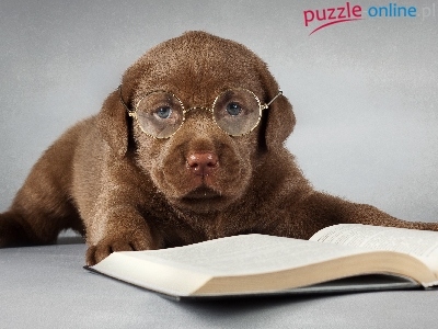 Puzzle Okulary, Szczeniak, Labrador, Książka