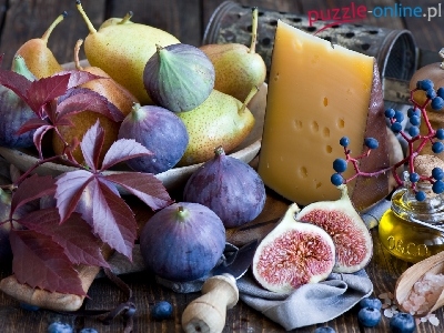 Figi, Oliwa, Borówki, Ser, Kompozycja, Gruszki, Liście