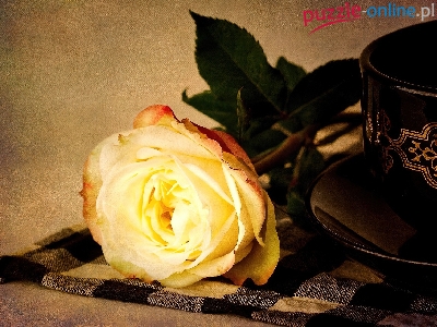Puzzle Róża, Żółta, Filiżanka