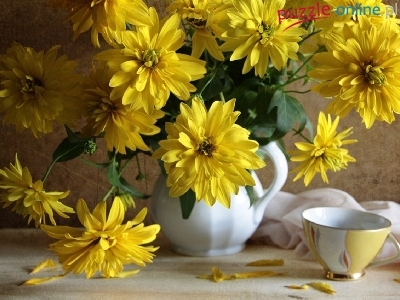 Puzzle Kwiaty, Żółte, Wazon