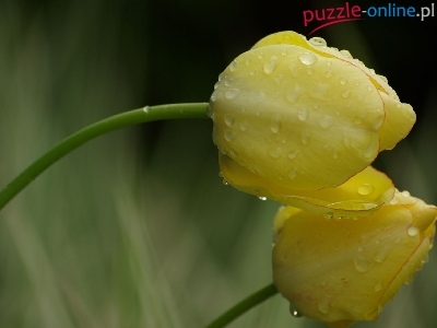 Puzzle Tulipany, Żółte, Deszcz