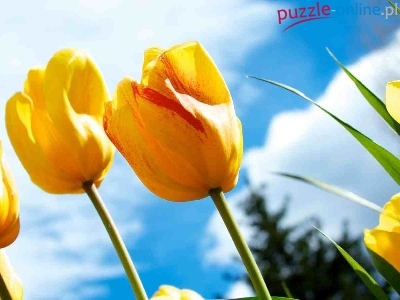 Puzzle Tulipany, Żółte, Niebo