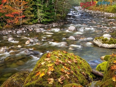 Las, Omszałe, Liście, Potok, Jesień, Kamienisty, Głazy
