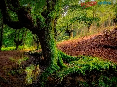 Kraj Basków, Omszałe, Strumyk, Las Otzarreta, Hiszpania, Park Narodowy Gorbea, Drzewa