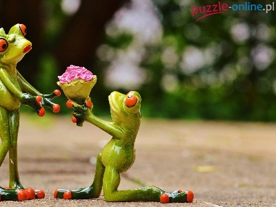 Figurki, On, Róż, Ona, Dwie, Żaby, Bukiet