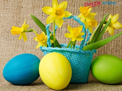 Żonkile, Koszyczek, Kompozycja, Wielkanoc, Narcyze, Pisanki