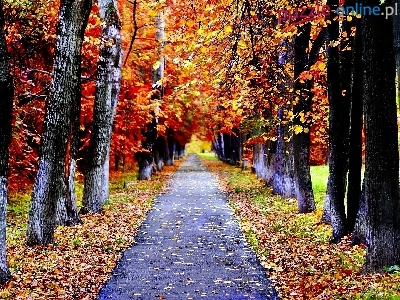 Droga, Opadłe, Park, Drzew, Jesień, Szpaler, Liście