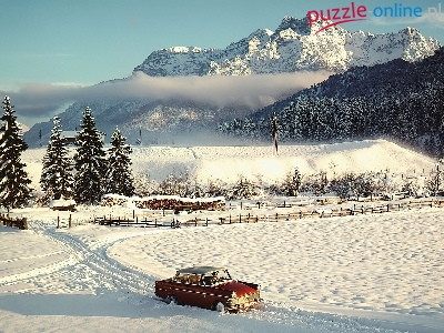 Puzzle Zima, Opel Rekord P2, Czerwony