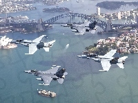 Samoloty, Miasto Sydney, Australia, Sydney Opera House Opera, Sydney, Odbicie Samolot, MiG-29 Challenger, Bombardier, 600 Sydney, Noc Niebo, Odrzutowiec, Chmury Vickers VC10, Tanker Port, Z lotu ptaka, Australia, Sydney, Miasto Przód, F-22 Raptor Ogień, Lockheed Martin, F-22 Raptor, Dym Bojowe, Samoloty, Misja Myśliwiec, Mig-29 Samolot, UN Space Fighter