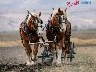 Orka, Konie, Tło, Dwa, Pole, Rozmyte