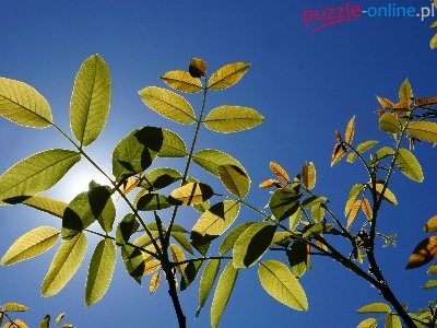 Puzzle Orzech włoski, Liście, Gałązki, Niebo