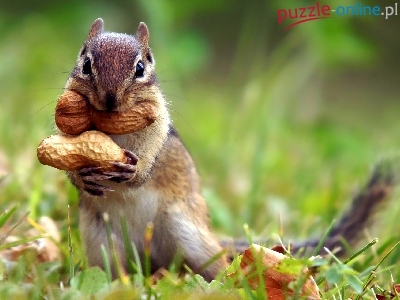 Orzeszki, Liście, Burunduk, Dwa, Trawa