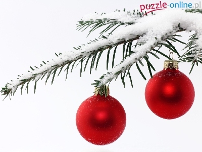 Puzzle Ośnieżona, Czerwone, Bombki, Gałązka