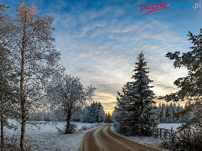 Zima, Ośnieżone, Droga, Pole, Drzewa