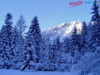 Puzzle Ośnieżone, Zima, Góry, Drzewa