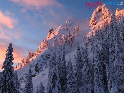 Puzzle Ośnieżone, Zima, Góry, Świerki