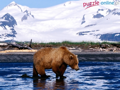 Puzzle Ośnieżone, Niedźwiedź, Woda, Góry