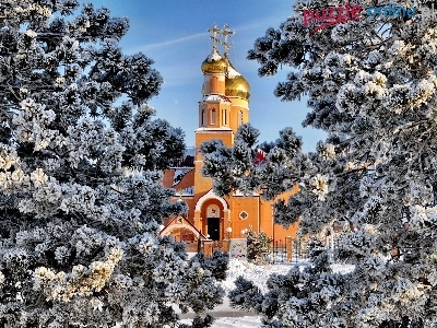 Puzzle Ośnieżone, Cerkiew, Zima, Sosny
