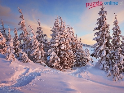 Puzzle Świerki, Zima, Ośnieżone, Ścieżka