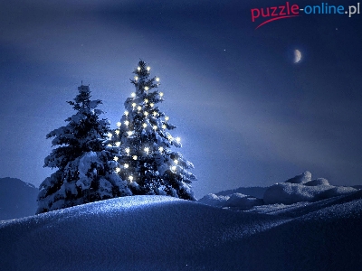 Oświetlona, Zima, Góry, Noc, Choinka
