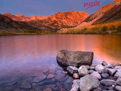 Puzzle Oświetlone, Jezioro, Kamienie, Stoki