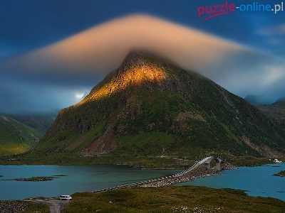 Oświetlone, Drogi, Jezioro, Most, Góry