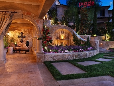 Oświetlony, Zmrok, Dom, Ogród, Taras