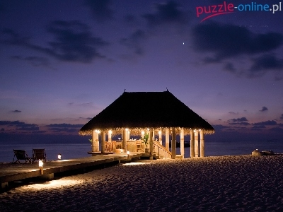 Oświetlony, Tropik, Plaża, Pomost, Szałas