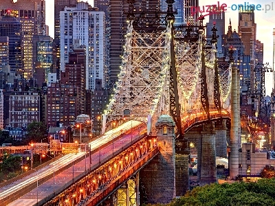 Oświetlony, Wieżowce, Nowy Jork, USA, Most