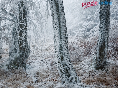 Gałązki, Las, Zima, Oszronione, Mgła, Drzewa