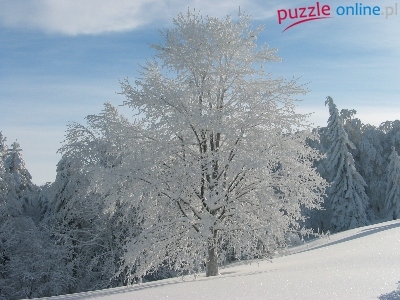 Puzzle Drzewo, Oszronione, Śnieg