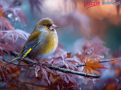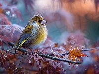 Gałązki, Ptak, Żółty, Oszronione, Grafika AI, Liście