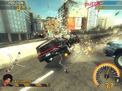 Flat Out, Wyścig Flat Out, wypadek most, iskry, ulica Wyścig, Gruchot