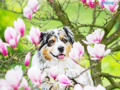 Puzzle Owczarek australijski, Magnolia, Australian shepherd