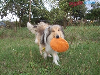 Puzzle Owczarek szkocki długowłosy, frizbee