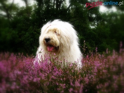 Puzzle Owczarek staroangielski Bobtail, Głowa, wrzosy