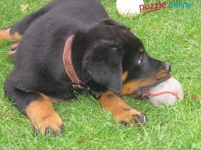 Puzzle Owczarek francuski Beauceron, Młody, piłka